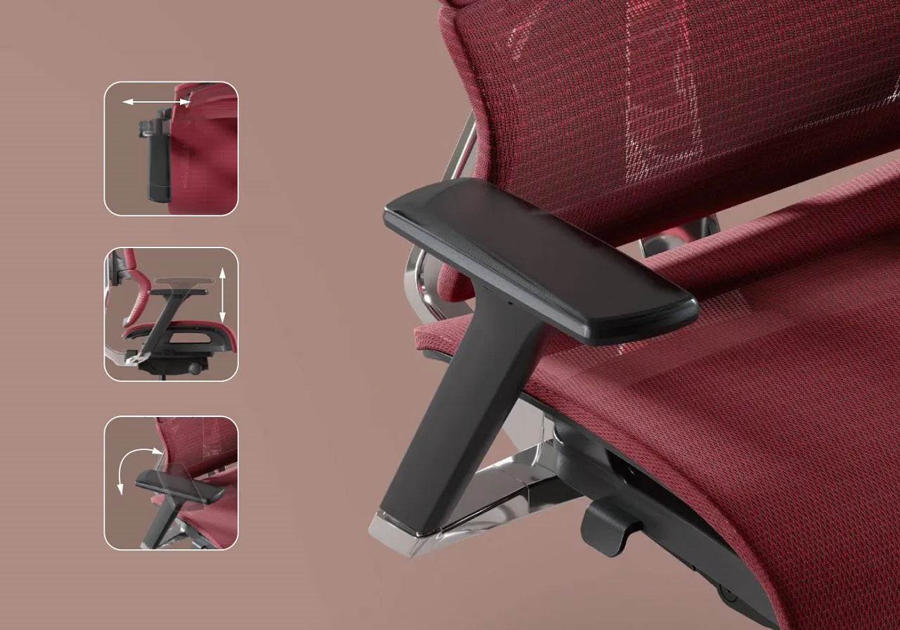 Integrated aluminum armrest design. 3D adjustable structure with 45 mm forward/back, 70 mm up/down, and 50° rotation, providing flexible elbow support and helping you find a more comfortable sitting posture.